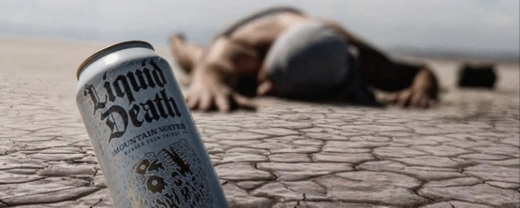 Zatiaľ čo značky ako Evian alebo Vittel vás chcú „osviežiť“, Liquid Death chce váš smäd brutálne zavraždiť. Slogan „Murder Your Thirst“ nie je len vtipná provokácia. Je to psychologický útok na tradičný marketing.