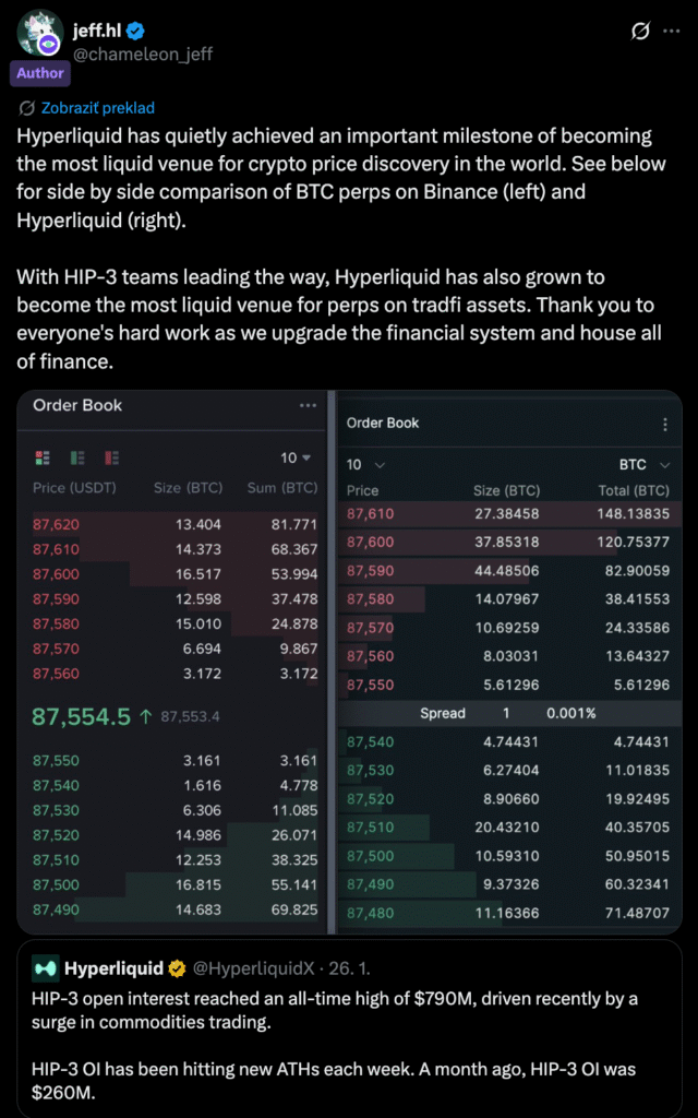 Ako sa však táto aktivita premieta do podpory ceny HYPE? Spojenie medzi obchodovaním so striebrom a cenou Hyperliquidu vyplýva z nedávnej štrukturálnej modernizácie protokolu, známej ako Hyperliquid Improvement Proposal 3 (HIP-3).
